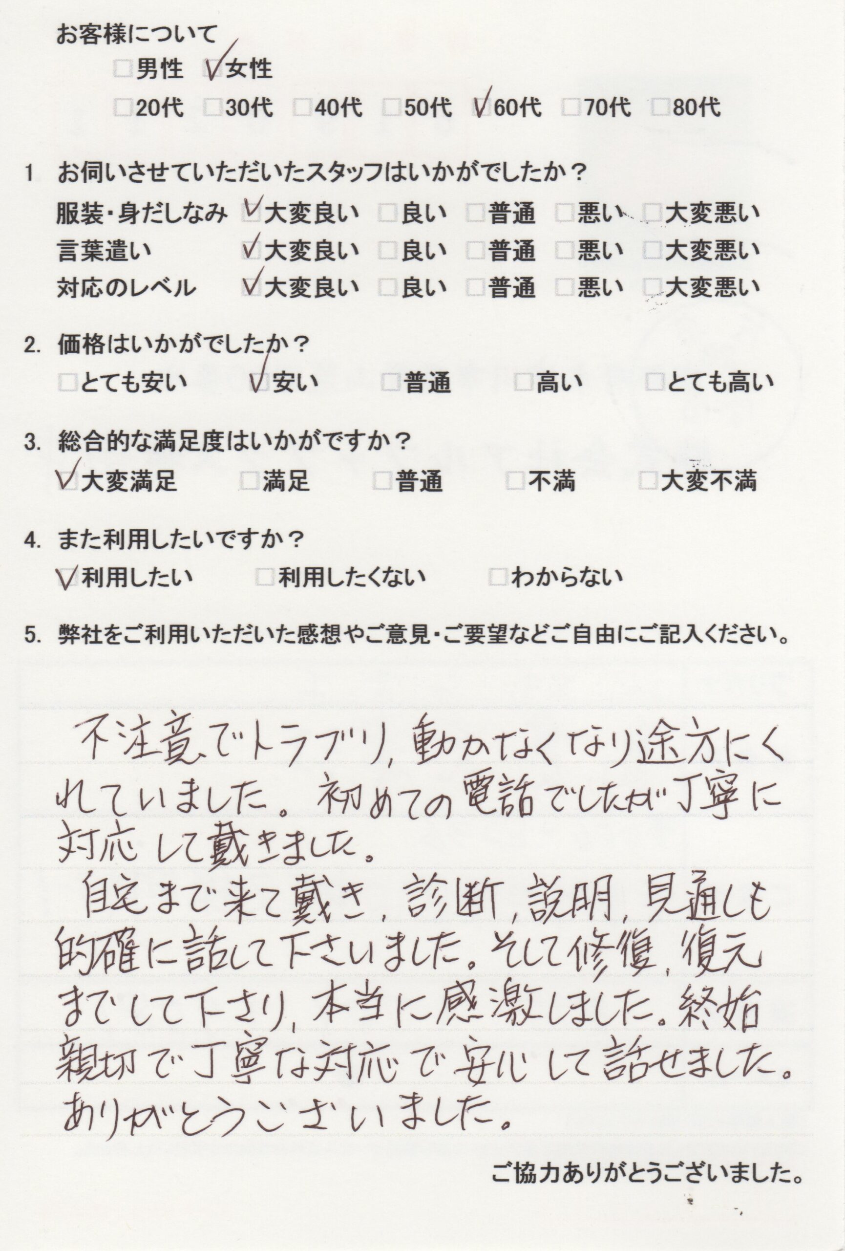 この度はパソコントータルサポートをご利用いただきましてありがとうございました。