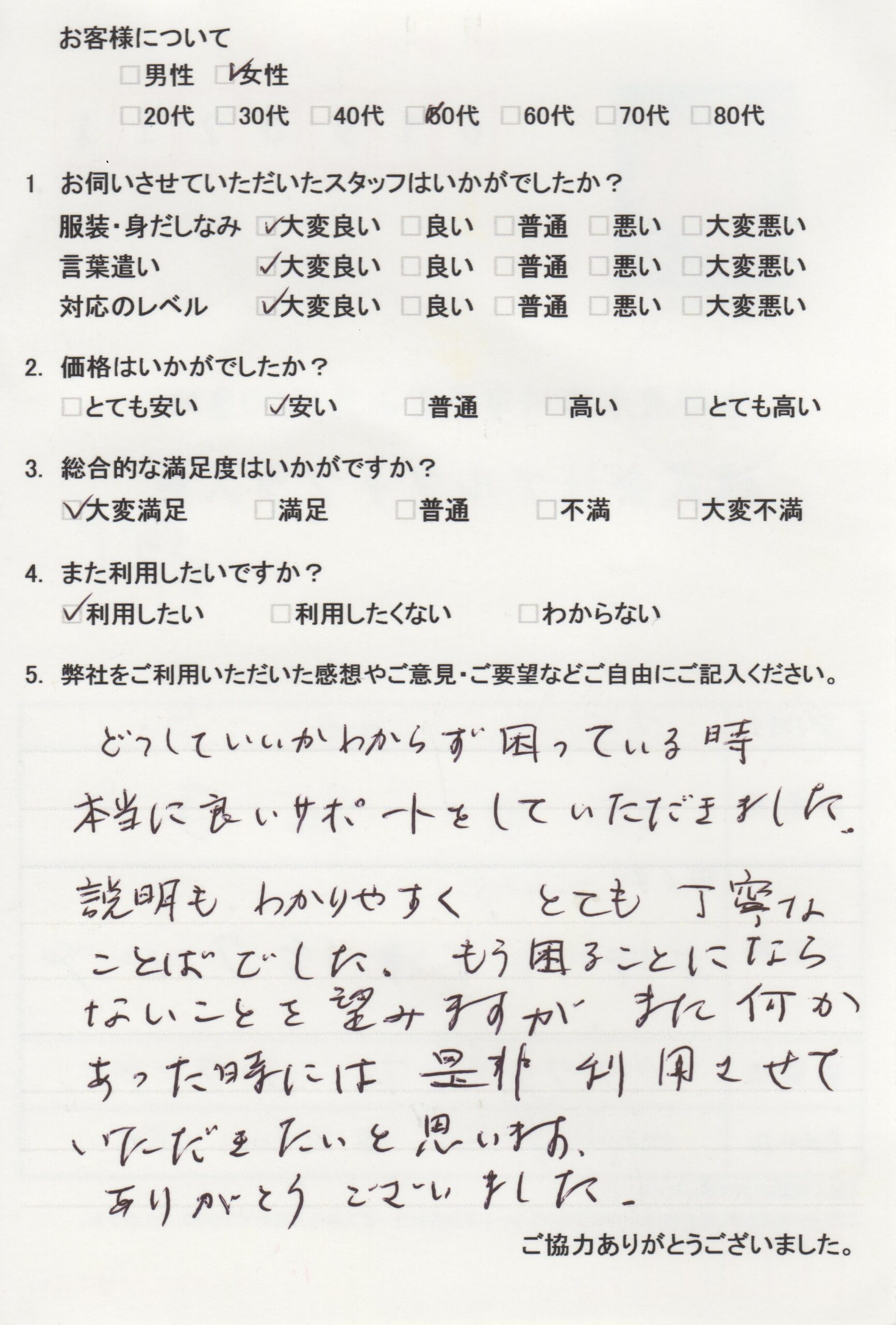 前回に引き続きパソコントータルサポートにご依頼いただきましてありがとうございました。