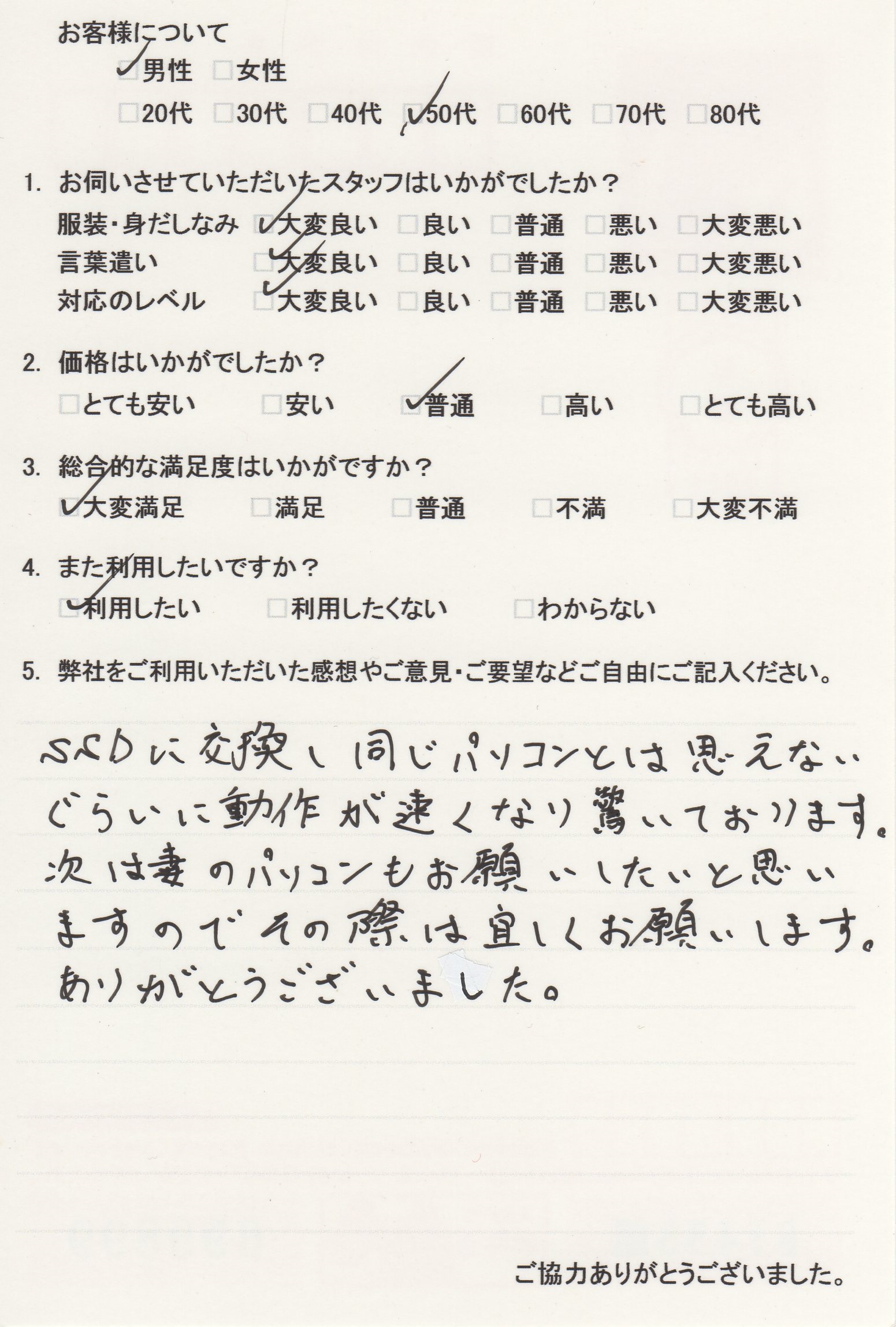 次回、奥様のパソコンのご相談を心よりお待ちしております。