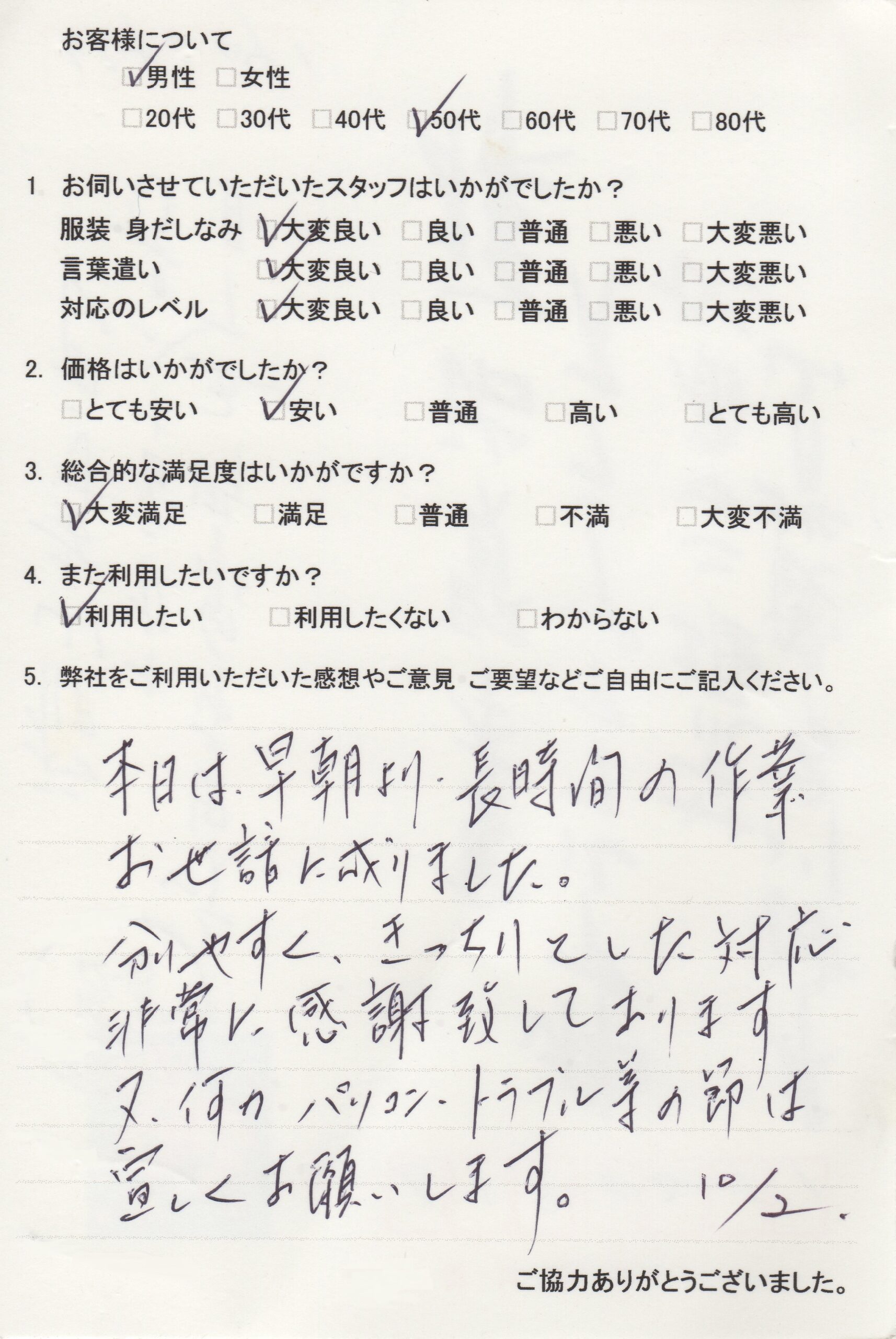 この度はパソコントータルサポートをご利用いただきましてありがとうございました。