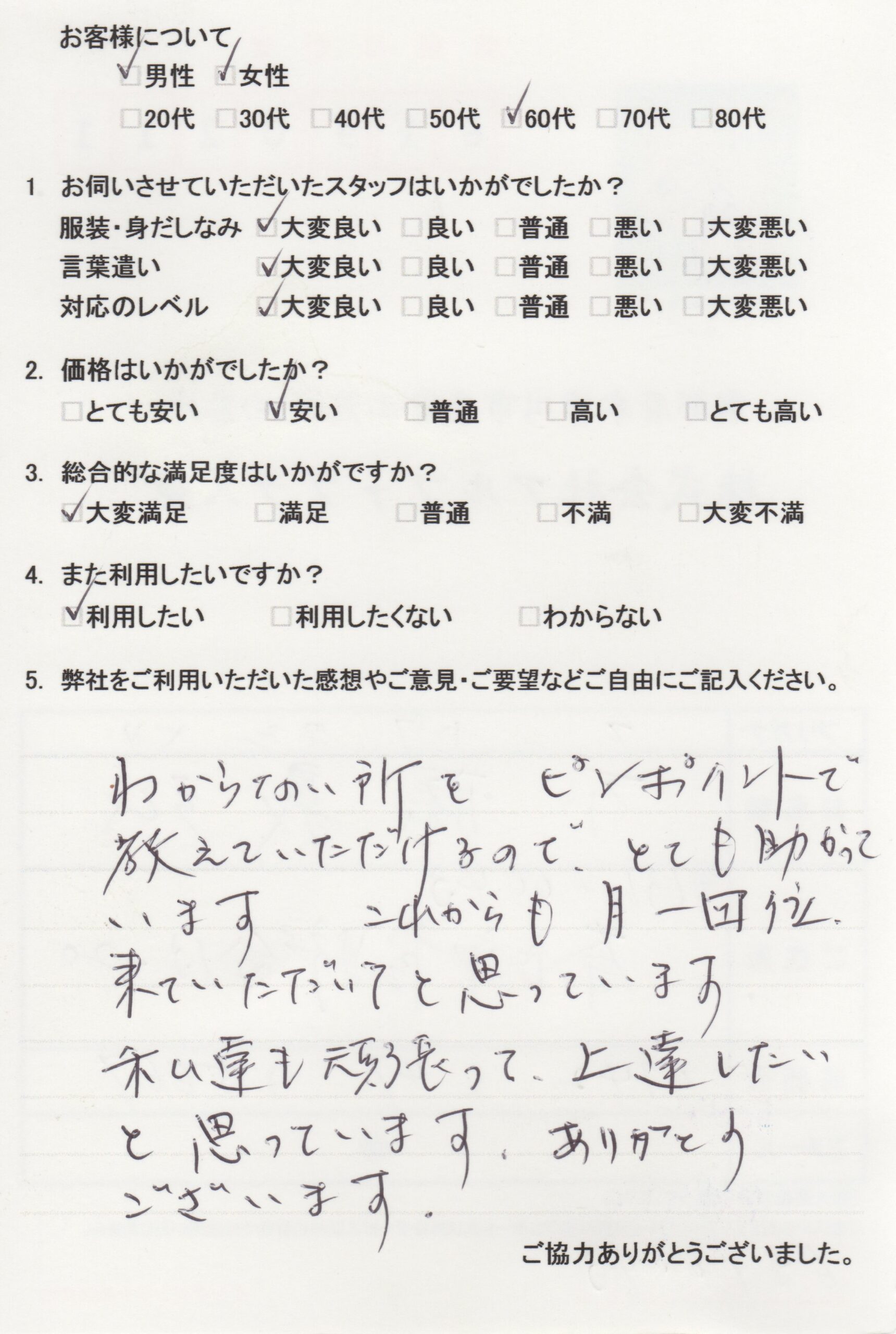 奈良県奈良市 F様 【ご依頼内容:パソコンレッスン120分パック】