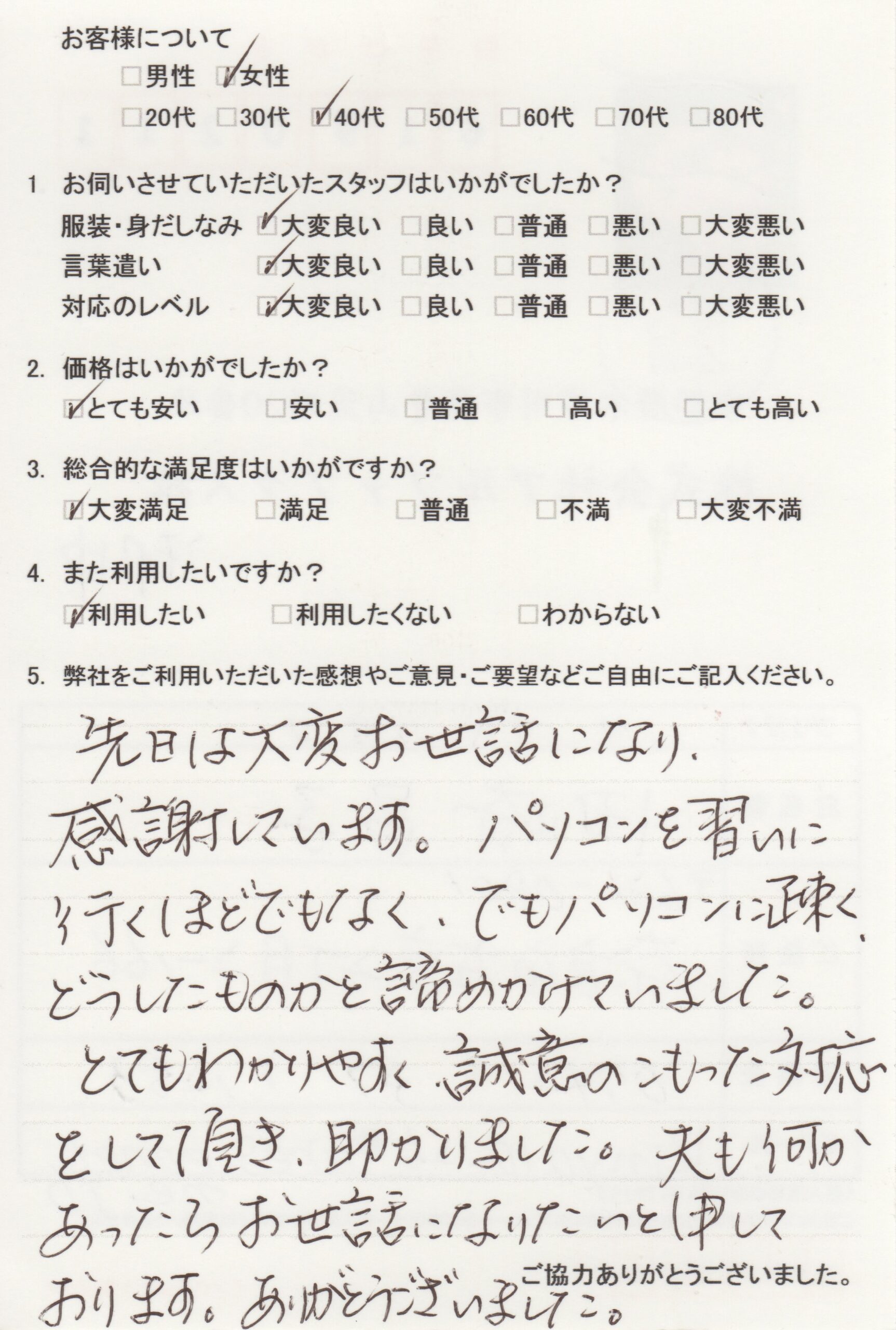 この度はパソコントータルサポートをご利用いただきましてありがとうございました。