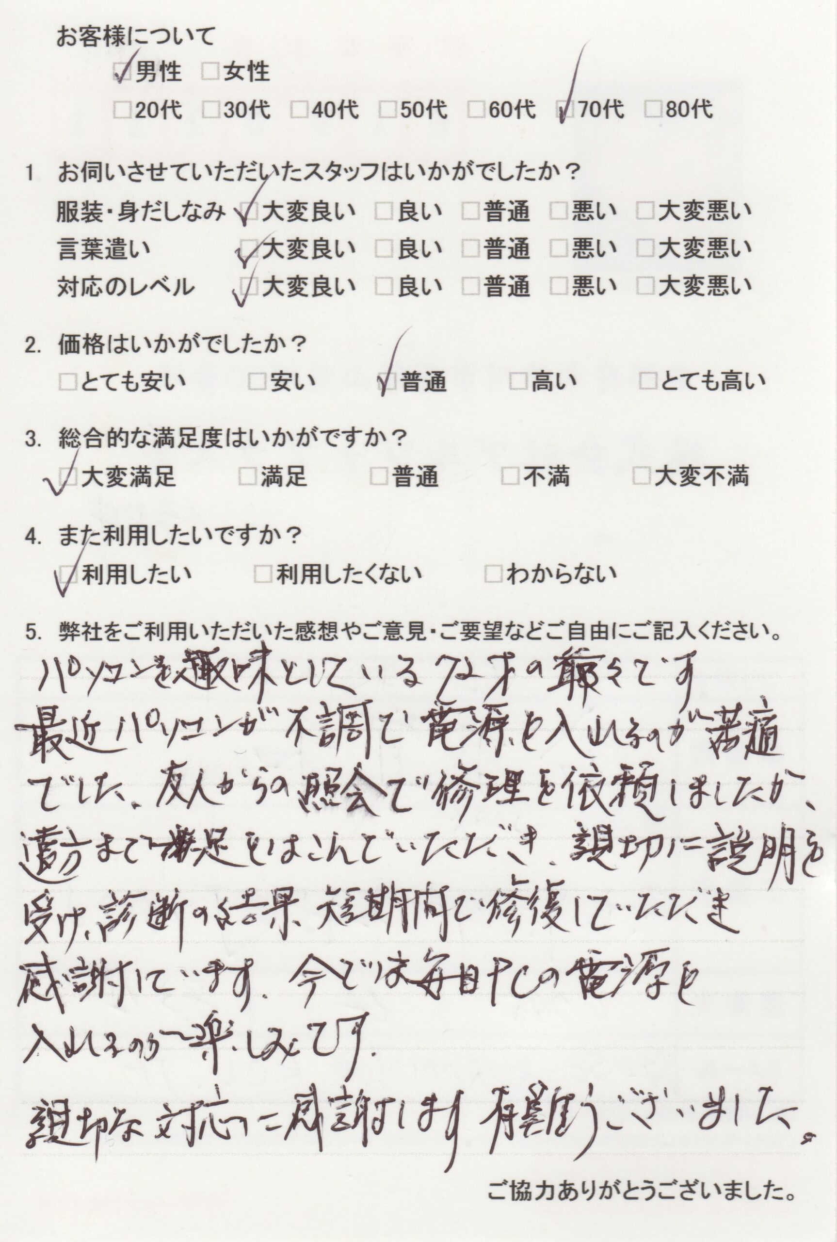 この度はパソコントータルサポートをご利用いただきましてありがとうございました。