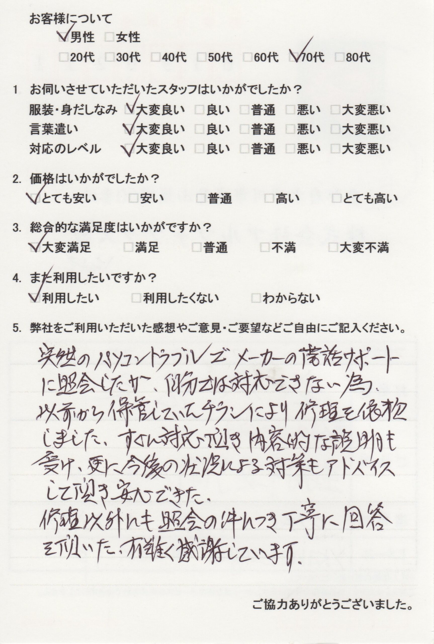 この度はパソコントータルサポートをご利用いただきましてありがとうございました。