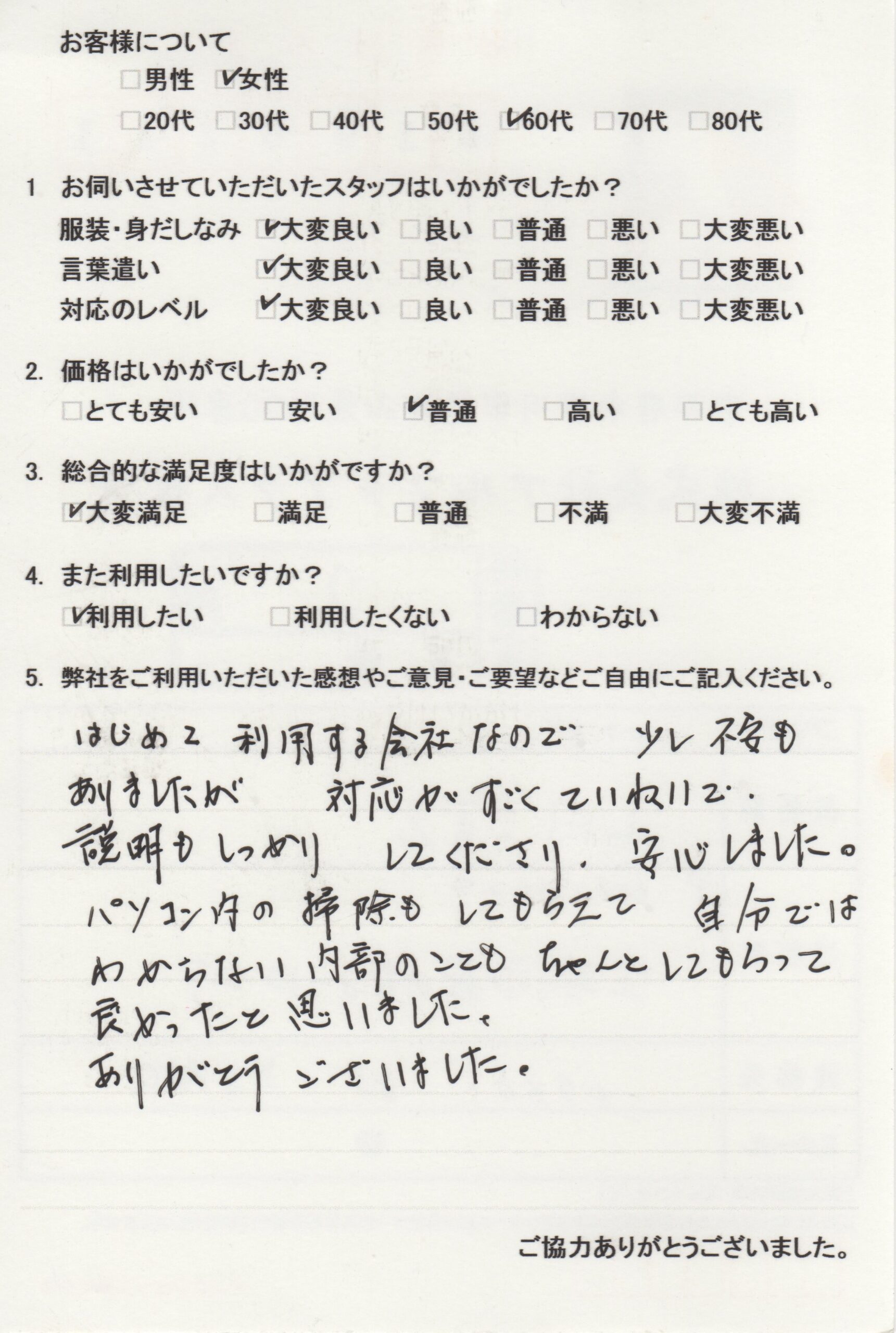 この度はパソコントータルサポートをご利用いただきましてありがとうございました。
